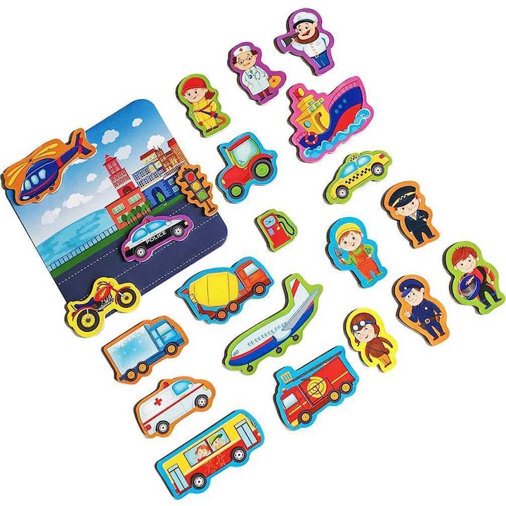 Set magnetic Mijloace de Transport cu Plansa magnetica inclusa, 22 piese, Roter Kafer