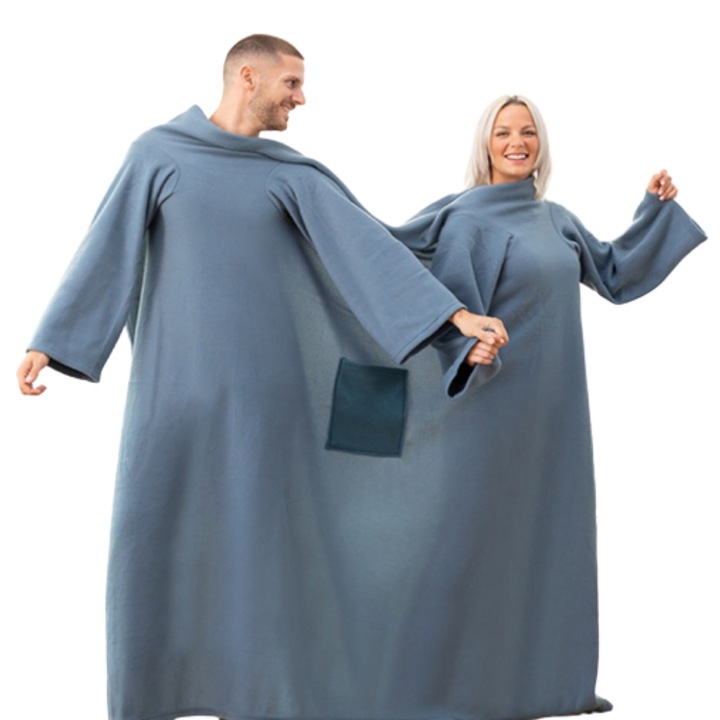 Patura cu maneci pentru cupluri, Moale si Calduroasa, Albastru, 160 cm x 180 cm, MindBlower