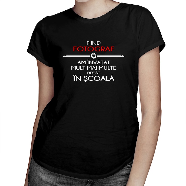 Tricou pentru femei, Fiind fotograf am invatat mult mai multe decat in scoala, Negru, L EU