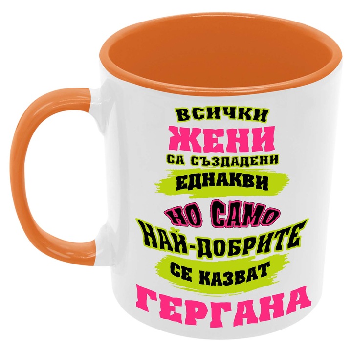 Cana din ceramica pentru ziua numelui de Sf. Cadou Ziua numelui de Sf. Gheorghe Tralala Cele mai bune femei se numesc Gergana, Portocaliu, 330 ml