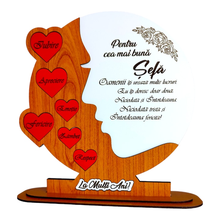 Decoratiune tablou, personalizat cu mesaj standard pentru sefa, dimensiune 25cm, model 1, alb