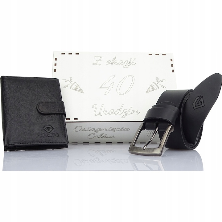 Set Portofel si Curea Barbati Gracio, Piele Naturala, Negru, 10x12.7x2.5cm, Cutie Cadou
