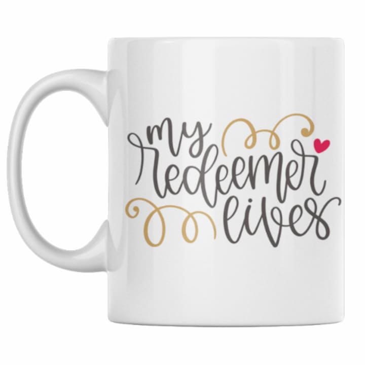 Cana cadou pentru casa noua, Priti Global, cu mesaj crestin, "Rascumparatorul meu traieste", pentru Paste sau Inviere, 300 ml