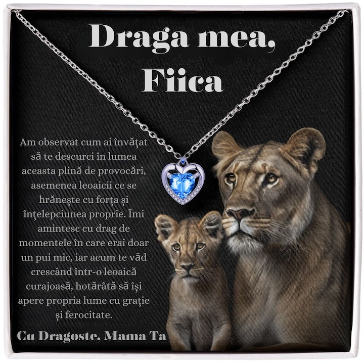 Set Cadou Colier Argint 925, cutiuta personalizata cu felicitare de iubire de la Mama pentru Fiica - Lion Love 9