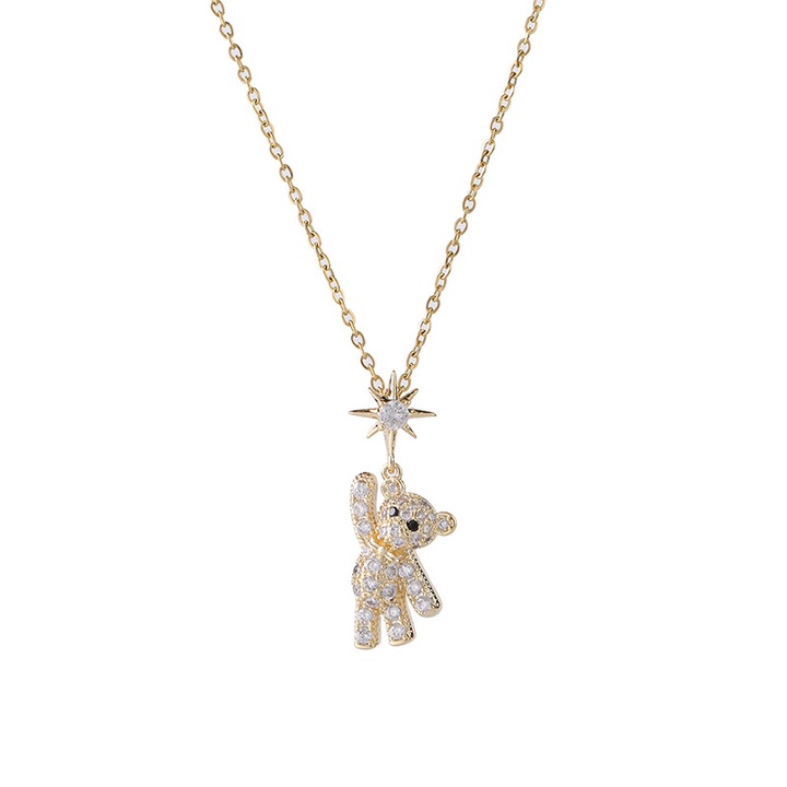 OEM - Colier handmade pentru femei, pandantiv urs, zircon, cilindru, auriu, ambalaj personalizat