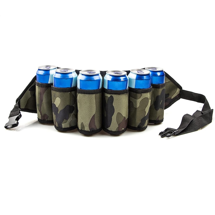 Centura pentru Doze Bere, QttvbTna, Panza Oxford, 17 x 62 cm, Reglabil 70-110 cm, Camuflaj