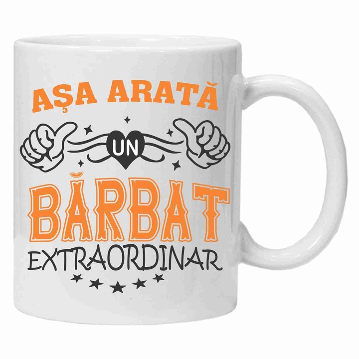 Cana inscriptionata cu textul "asa arata un barbat extraordinar", CRD PRINT, 330ml, alba