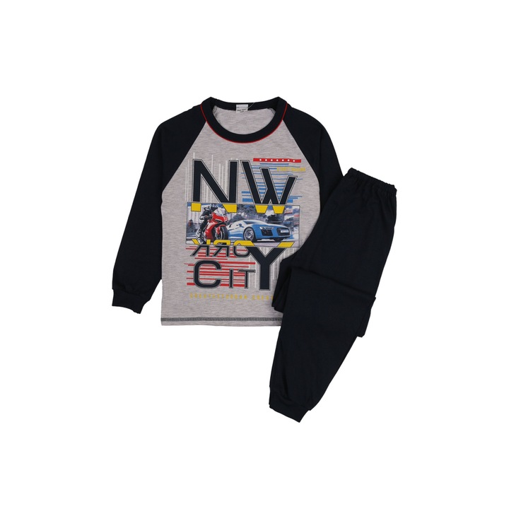 TUP TUP - Pijamale copii Tup-Tup, imprimeu masina de curse si motocicleta, bumbac, negru, 140cm