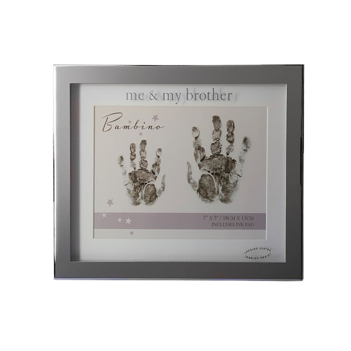Rama foto cu amprenta, Bambino by Juliana, placata cu argint, 18x13 cm, pentru bebelusi cu textul "me & my brother"