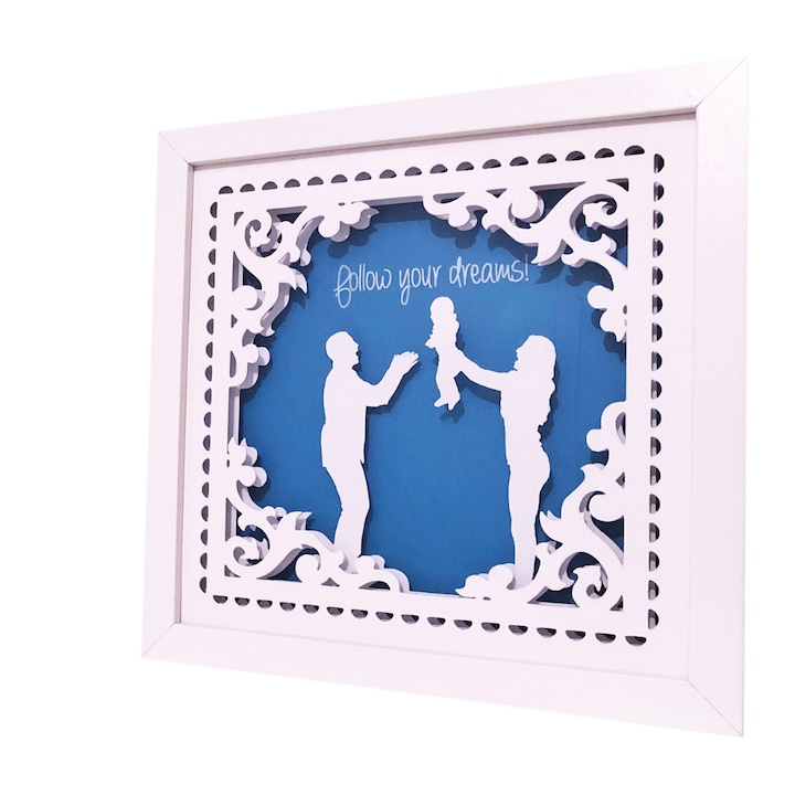 Tablou 3D, luminos, personalizabil, familie cu bebe, Noor Handmade Atelier, 25 x 25cm