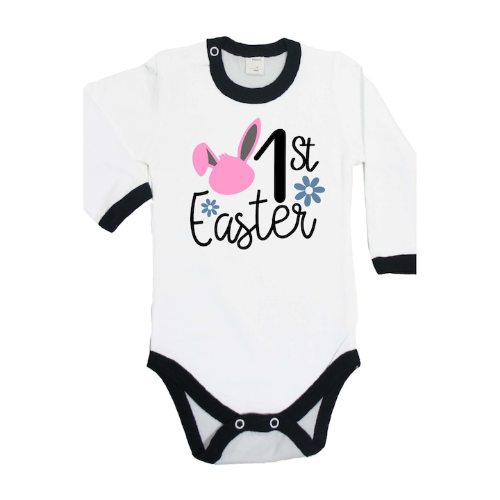 Body bebelus cu maneca lunga Iepurasul de Paste Cadou de Paste Oua Oua Tralala Primul meu iepuras de Paste 4, Negru cu maneca lunga, XS - 56 (1-3 luni)