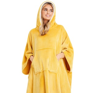 Patura cu Maneci tip Hanorac, Lung, cu Gluga si Buzunare, Premium, Flannel Fleece, Marime Universala, gri