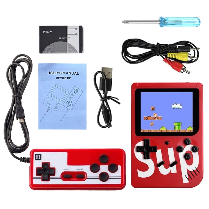 Consola joc de buzunar Tetris, Axroad Mall, 400 in 1, Joc pentru doi jucatori, Alimentare pe Baterii, Cu Diferite Jocuri, Suporta interfata AV, Dimensiune convenabila, Cadouri perfecte pentru baieti, fete si adulti, Ecran 2.4 inch, Rosu