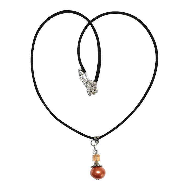 Bijuterii Uniq - Pandantiv dama, perla mallorca, snur sued si accesorii inox,handmade,bijuterii dama,,Portocaliu,44 cm