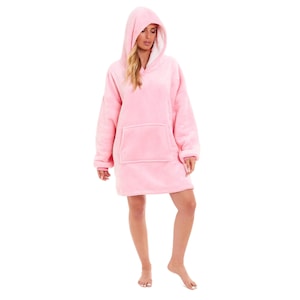Patura cu Maneci si Gluga Miraza, Tip Hanorac, Buzunar Incapator, Fleece Calduros, Plusat, Marime Universala, Roz