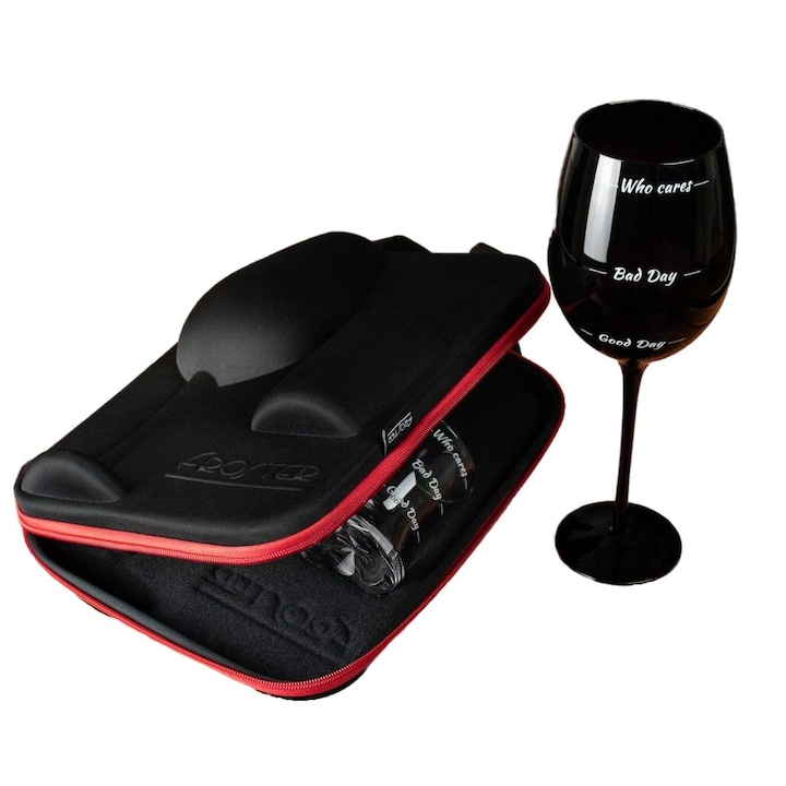 Set Cadou Luka, Cana Whisky si Pahar Vin, "Good Day/Bad Day/Who cares", in geanta, 300ml/750ml
