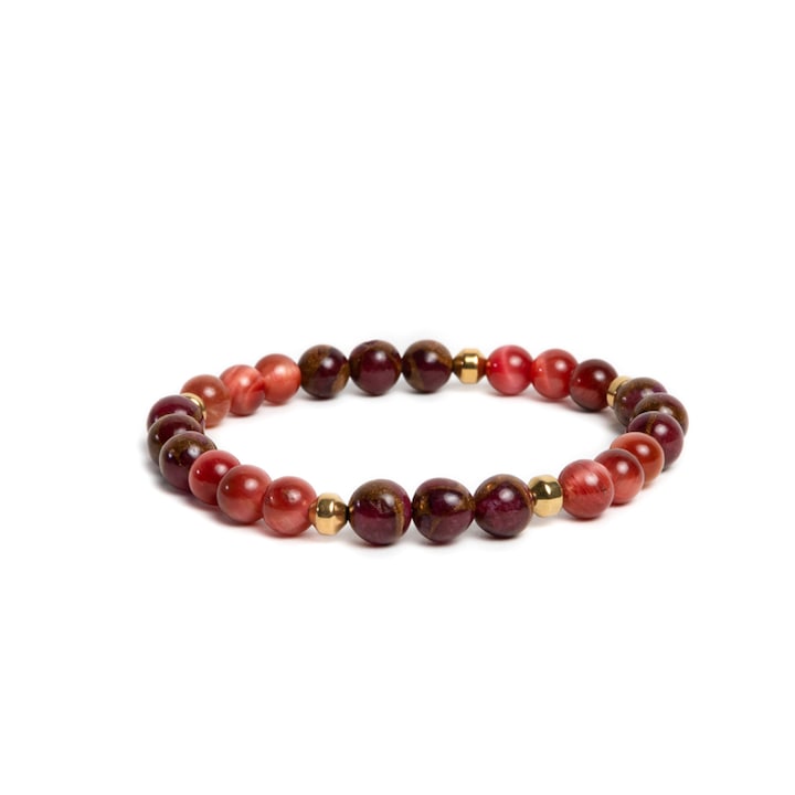 Ezera - Bratara pietre semipretioase dama, cu cristale din Ochi de Tigru si Cloisonne Rosu, Annissa, sfere de 6 si 8 mm, 17-18cm